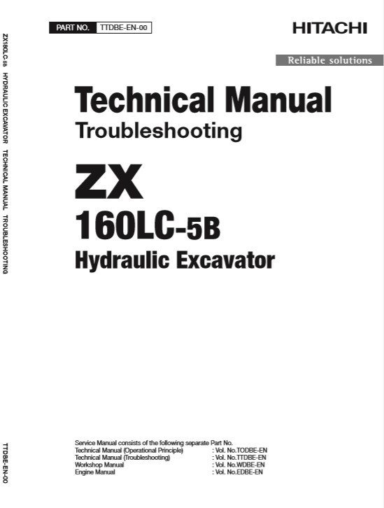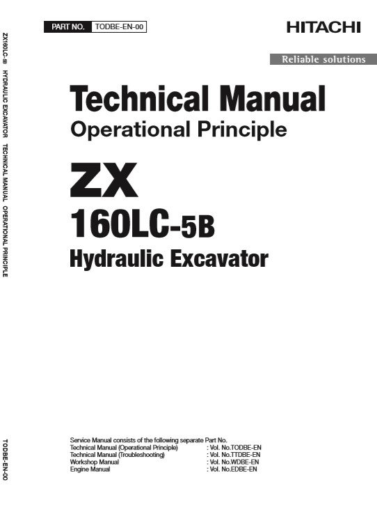 The Hitachi ZX160LC-5B Technical Manuals provide in-depth, factory-authorized information essential for diagnosing, testing, and understanding the complex systems of your hydraulic excavator. Designed for professional technicians and service engineers, these manuals cover the operational theory and control logic of all major components and systems.