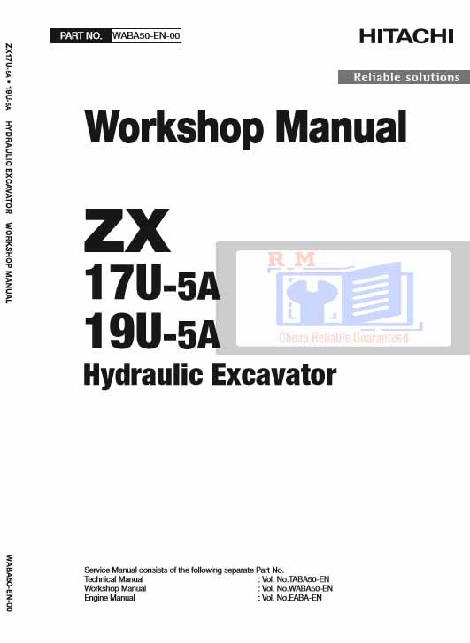 Hitachi ZX17U-5A and ZX19U-5A Excavator Workshop Manual, featuring essential maintenance and repair informationHitachi ZX17U-5A and Hitachi ZX19U-5A Excavator Workshop Manual