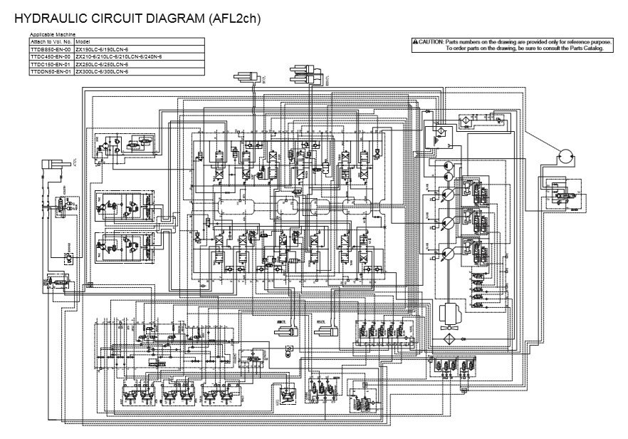 Electrical and hydraulic diagrams for Hitachi ZX190-6 to ZX350-6 excavators, detailing system layouts and connectionsHitachi ZX190-6 to ZX350-6 Electrical and Hydraulic Diagrams