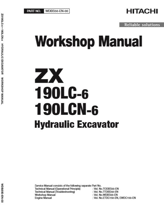 The Hitachi ZX190LC-6 and ZX190LCN-6 Workshop Manual and Diagrams is the official factory-issued service guide for maintenance, troubleshooting, and repair of these powerful hydraulic excavators. Designed for professional technicians and maintenance personnel, this manual provides the detailed instructions, specifications, and diagrams needed to ensure accurate servicing and long-term machine performance.