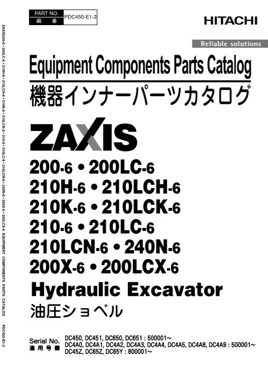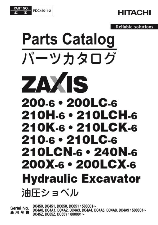 Hitachi ZX200-6, Hitachi ZX210-6 Series Parts Manual
