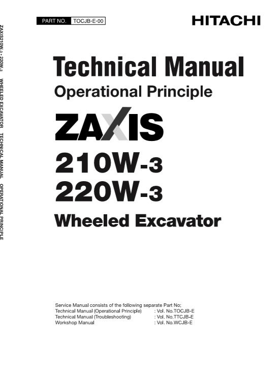 Hitachi ZX210W-3 and ZX220W-3 technical manuals, providing essential information for operation and maintenanceHitachi ZX210W-3, Hitachi ZX220W-3 Technical Manuals