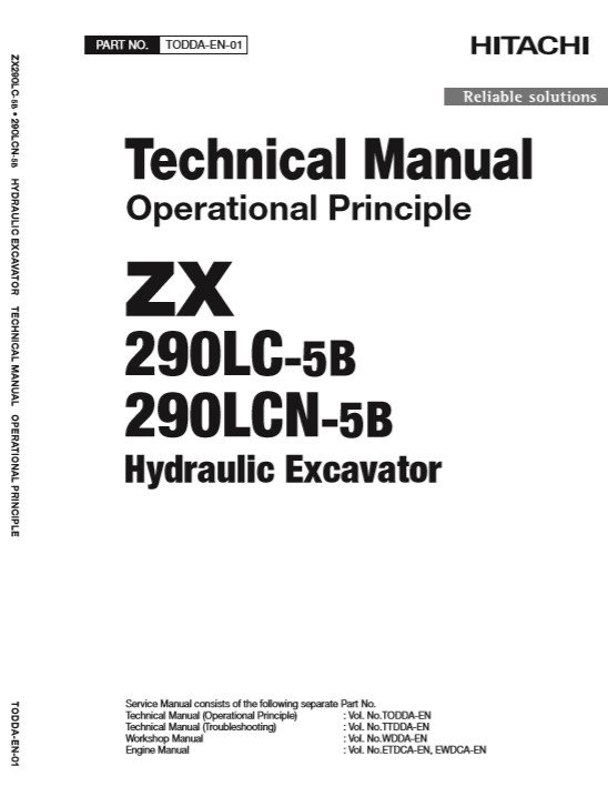 Hitachi ZX290LC-5B and ZX290LCN-5B technical manuals, providing essential information for operation and maintenanceHitachi ZX290LC-5B, Hitachi ZX290LCN-5B Technical Manuals