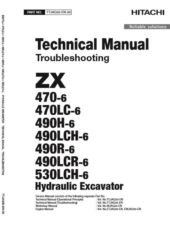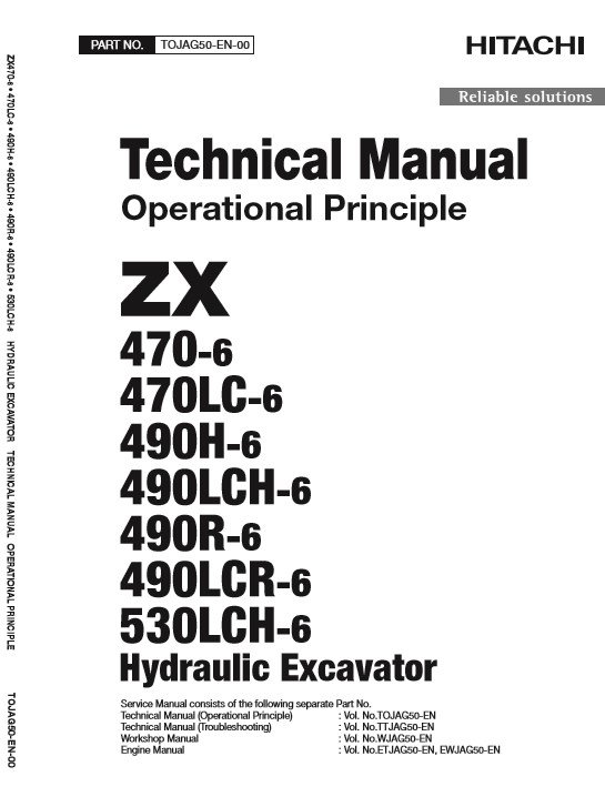 Hitachi ZX470-6, ZX490-6, ZX530-6 Series Technical Manuals