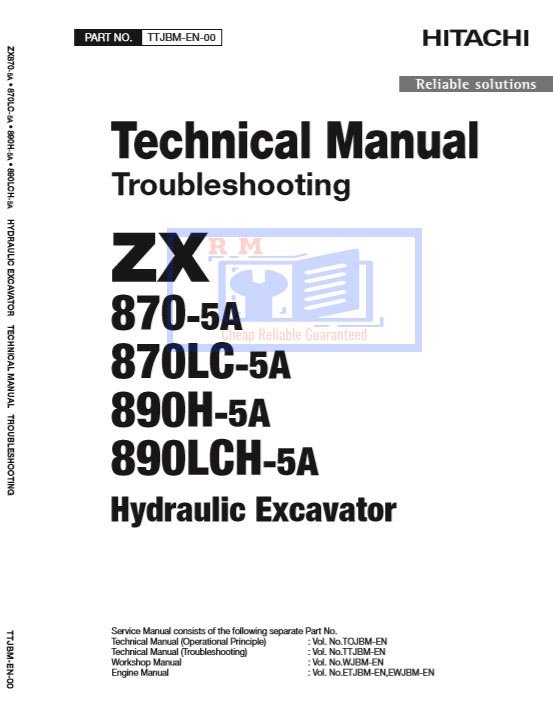 Hitachi ZX870-5A and ZX890-5A series technical manuals, providing essential information for operation and maintenanceHitachi ZX870-5A, Hitachi ZX890-5A Series Technical Manuals