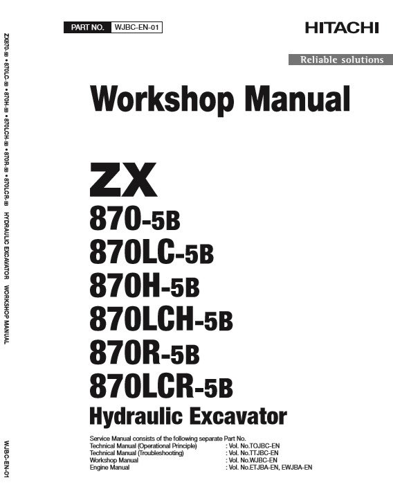 Hitachi ZX870-5B Series workshop manual with detailed diagrams for repair and maintenance proceduresHitachi ZX870-5B Series Workshop Manual and Diagrams