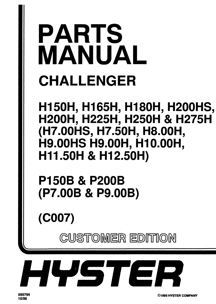 Hyster Challenger P150B & P200B Series Forklift Parts Manual