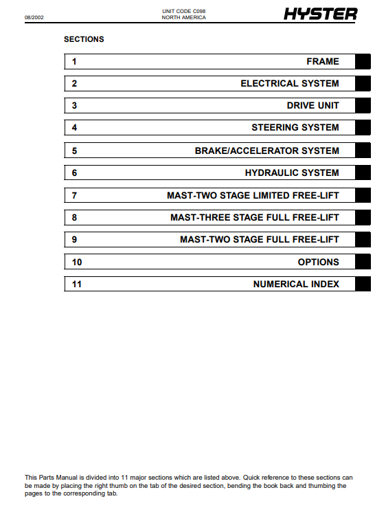 Hyster E100XL3, Hyster E100XL3S, Hyster E120XL3, Hyster E70XL3, Hyster E80XL3 (C098) Forklift Parts Manual