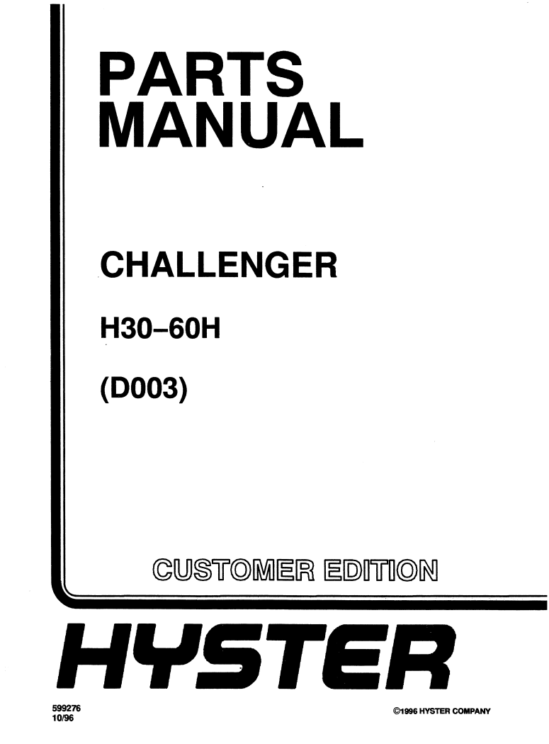 Hyster Challenger H30, 60H (D003) Forklift Parts Manual