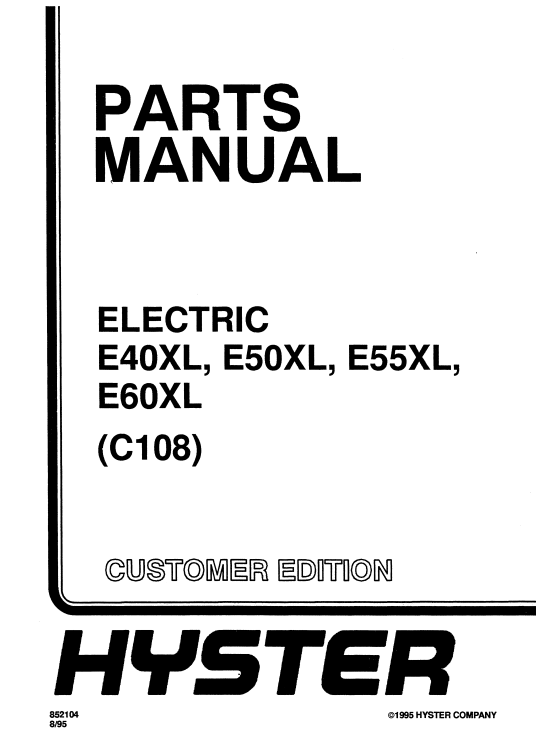 Hyster E40XL, E50XL, E55XL, E60XL (C108) Forklift Parts Manual