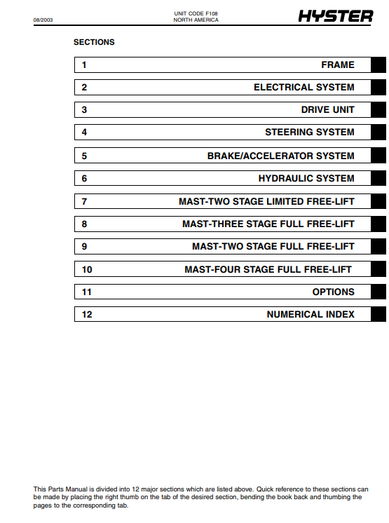 Hyster E45XM2, Hyster E50XM2, Hyster E55XM2, Hyster E60XM2, Hyster E65XM2 (F108) Forklift Parts Manual