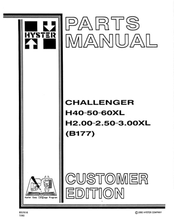 Hyster Challenger H40, H50, H60XL (B177) Forklift Parts Manual