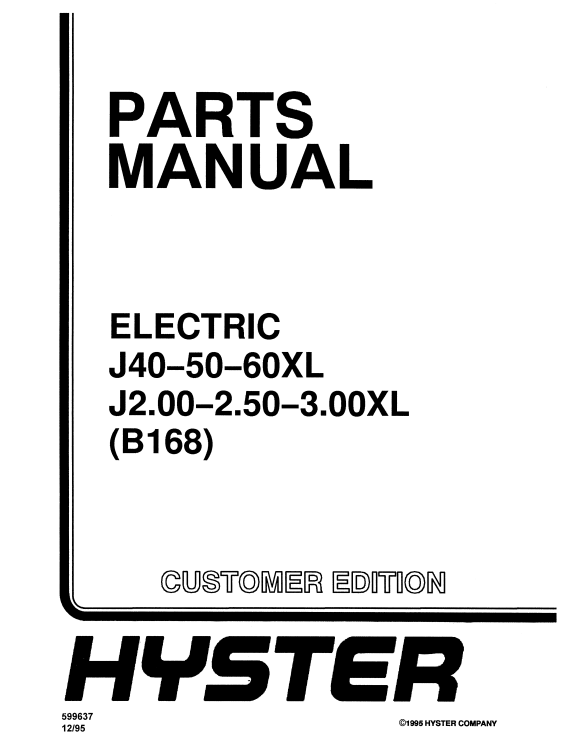 Enhance the performance and longevity of your Hyster J40, J50, and J60 forklifts with the comprehensive Forklift Parts Manual (B168). This essential guide provides detailed diagrams and specifications for all components, ensuring you can easily identify and source the right parts for maintenance and repairs. With clear instructions and expert insights, this manual empowers you to keep your equipment running smoothly, minimizing downtime and maximizing productivity. Invest in your operational efficiency today with this indispensable resource