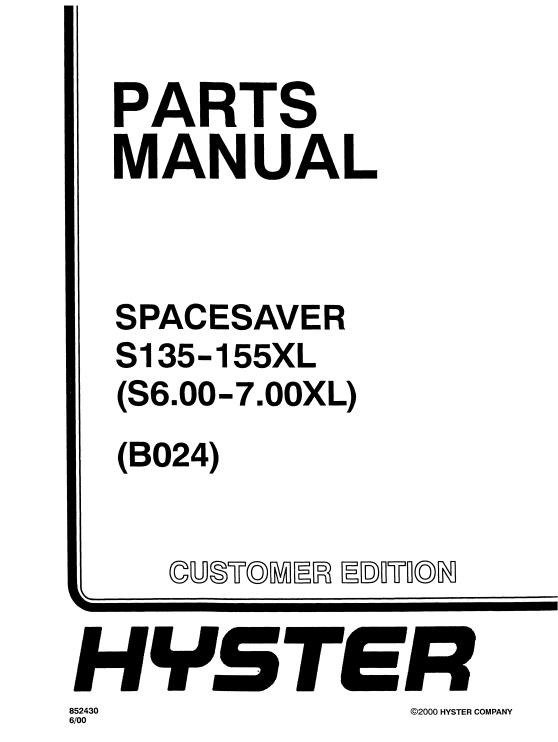 Hyster S135 , S155XL (B024) Forklift Parts Manual