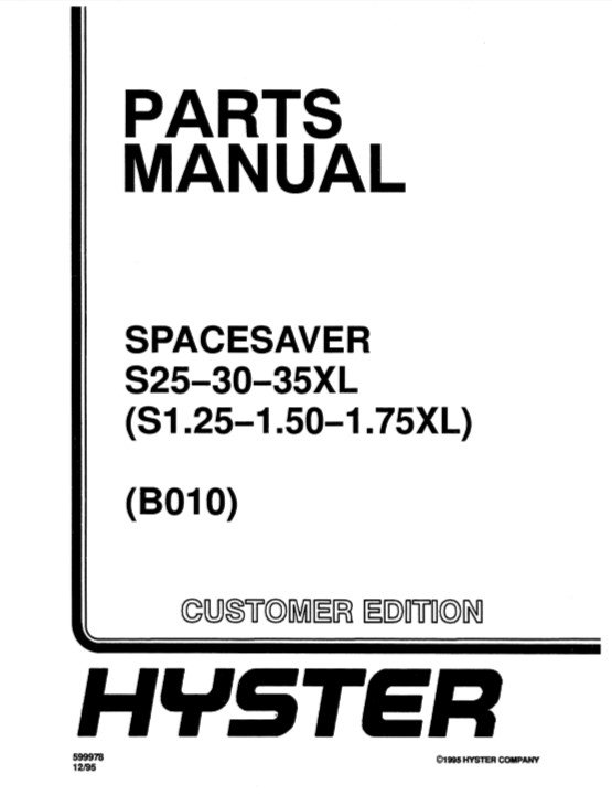 Enhance the longevity and performance of your Hyster Spacesaver S25, S30, and S35XL forklifts with the comprehensive Forklift Parts Manual (B 010). This meticulously crafted manual serves as an essential resource for operators and maintenance personnel, providing detailed diagrams, part numbers, and specifications that facilitate efficient repairs and replacements. With clear instructions and illustrations, you can easily identify components and ensure that your equipment runs smoothly, minimizing downtime and maximizing productivity. Whether you are a seasoned technician or a novice, this manual empowers you to maintain your forklift with confidence, ensuring safety and reliability in your operations. Invest in the Hyster Forklift Parts Manual today and keep your machinery in peak condition for years to come