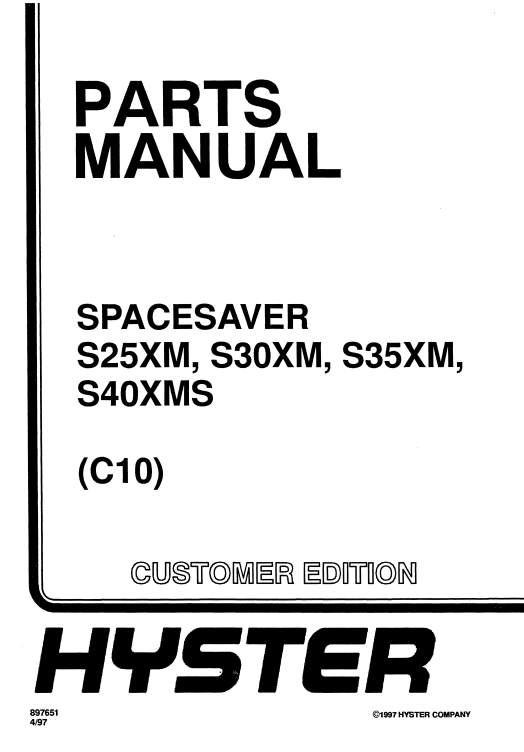 Hyster S25XM, S30XM, S35XM, S40XMS (C10) Forklift Parts Manual