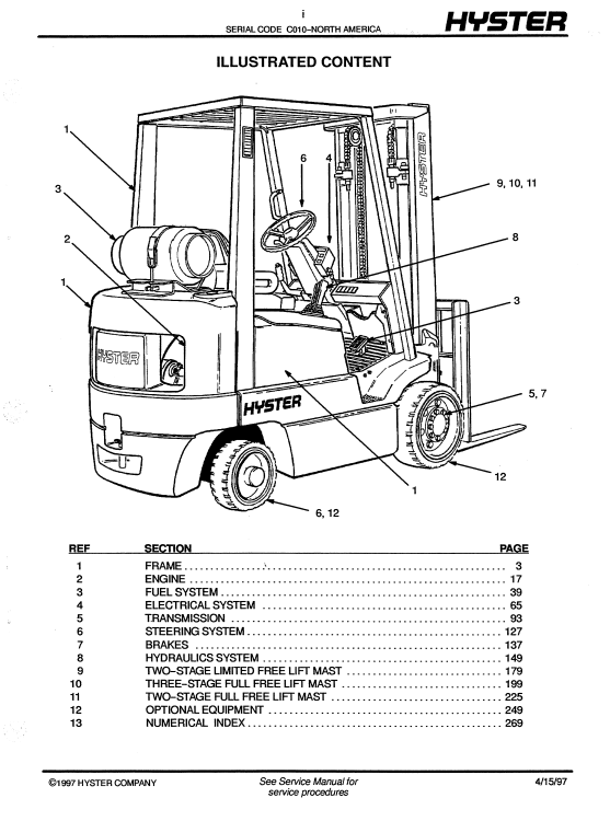 Enhance the performance and longevity of your Hyster S25XM, S30XM, S35XM, and S40XMS (C10) forklifts with our comprehensive Forklift Parts Manual. This essential guide provides detailed diagrams and specifications for all critical components, ensuring you can easily identify and source the right parts for maintenance and repairs. With clear instructions and expert insights, you can minimize downtime and maximize productivity, making this manual an invaluable resource for operators and maintenance teams alike. Invest in your equipment’s efficiency and reliability today
