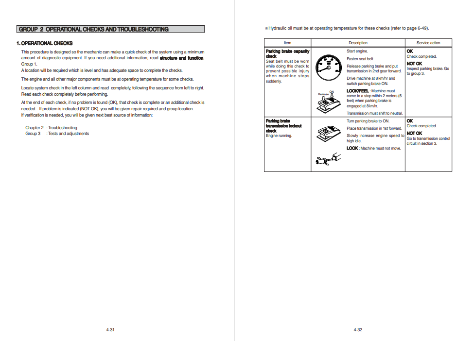 This group explains checks to be amide before and after performing repairs, as well as adjustments