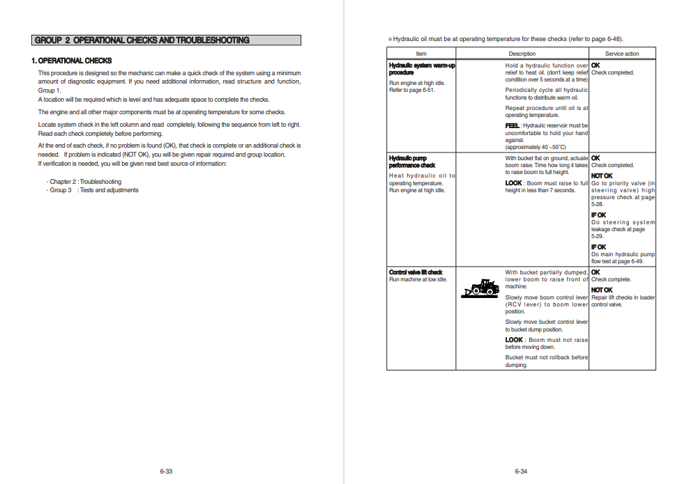 This group explains the system operational checks and troubleshooting charts correlating problem to remedy.