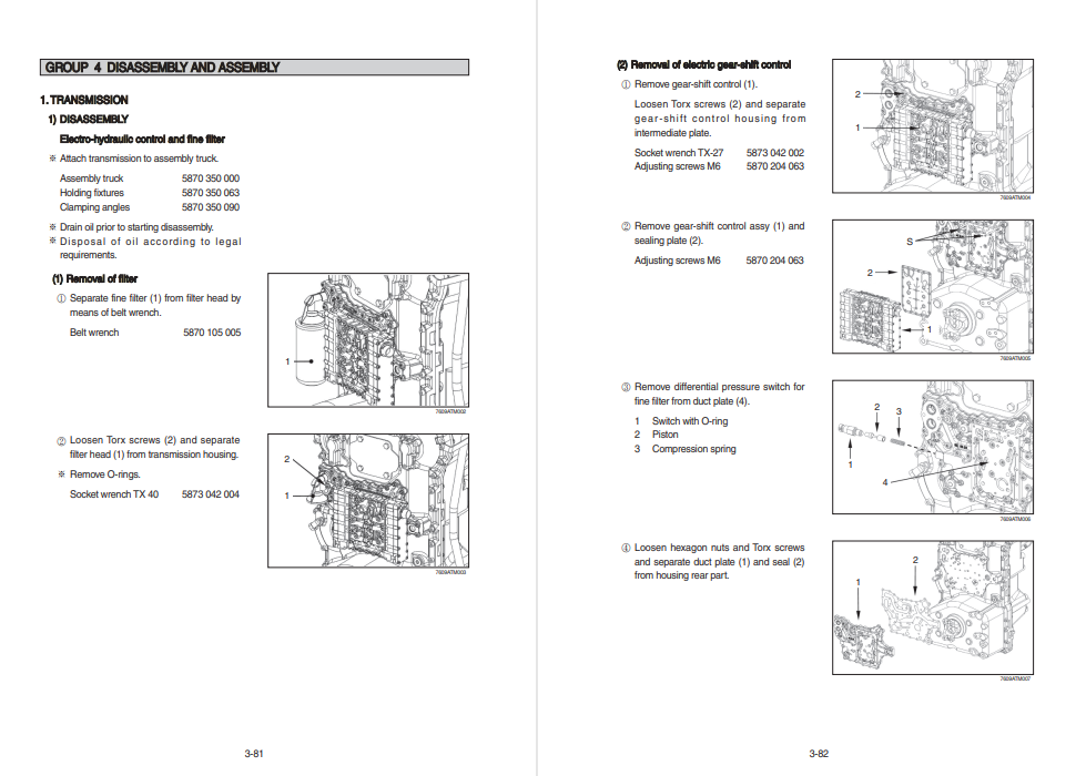 This group explains the order to be followed when removing, installing, disassembling or assembling