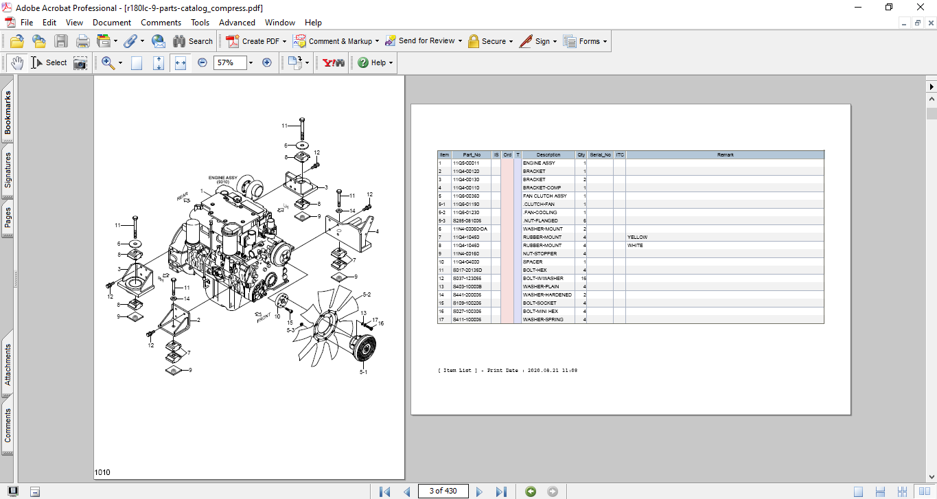 Hyundai R180LC-9 Excavator Parts Catalog