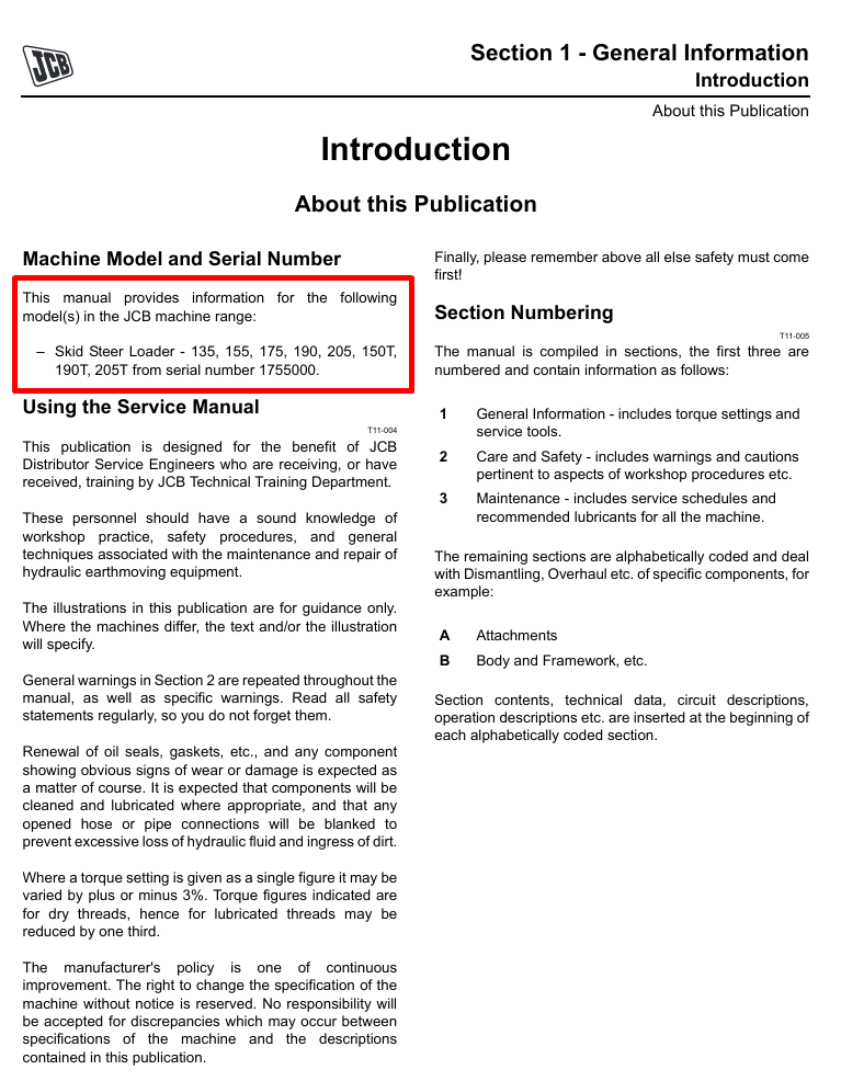 With this original factory Service manual, the technician can detect and solve any problems encountered when repairing your JCB Skid Steer Loader 205 and This workshop repair manual for the JCB Skid Steer Loader 205 provides detailed instructions and technical information for maintenance and repair tasks to keep your equipment in top condition.