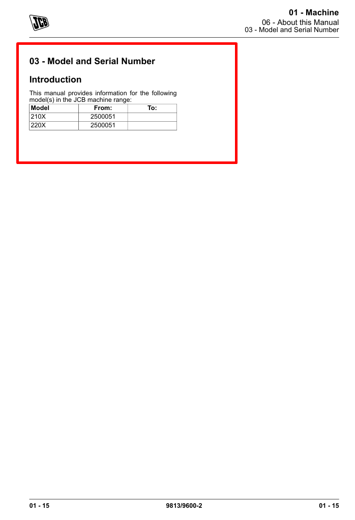 With this original factory Service manual, the technician can detect and solve any problems encountered when repairing your JCB 210X Excavator and This workshop repair manual for the JCB 210X Excavator provides detailed instructions and technical information for maintenance and repair tasks to keep your equipment in top condition.