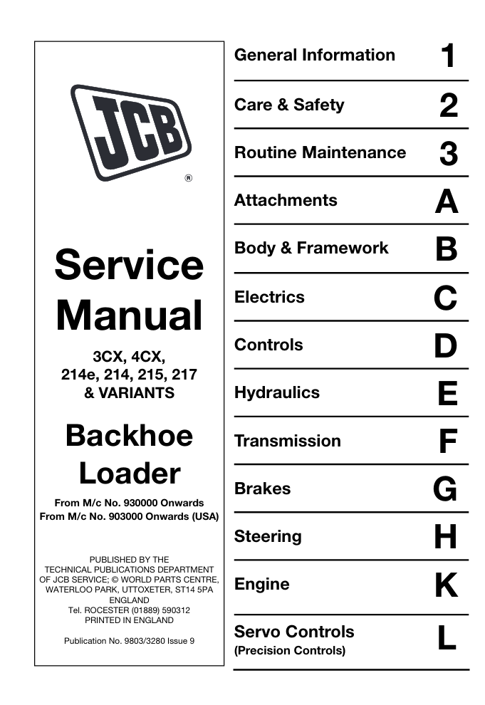 With This Service Repair Manual The Technician can solve any problems encountered in the operation of your JCB Backhoe Loader