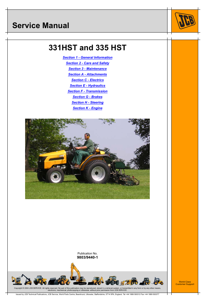 Original Factory Service Repair Manual for the JCB 331 HST Tractor. This manual is very detailed and contains all the official JCB manufacturer specifications, troubleshooting, repair instructions step by step with illustrations and wiring diagrams. Simple to complicated repairs can be completed effortlessly with the information provided. It is 100 percent complete and intact. The manual is specifically written for the DIY as well as the experienced mechanic