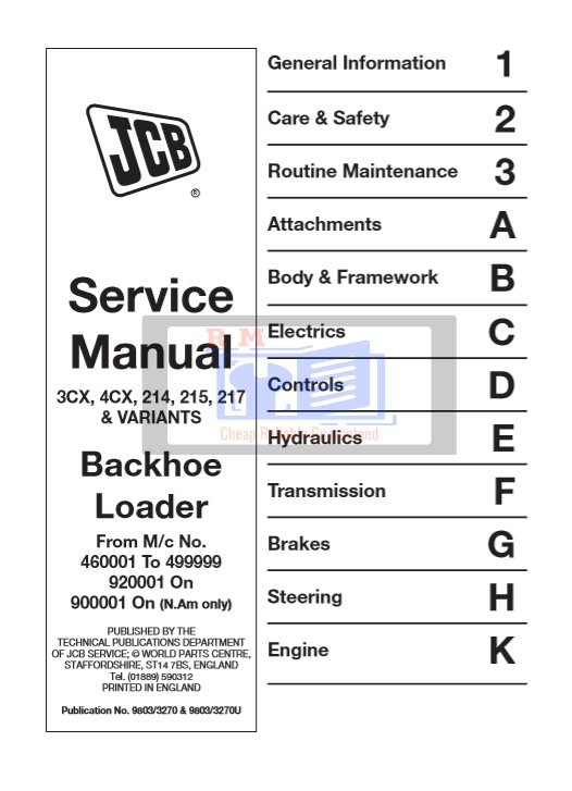 JCB 3CX, 4CX, 214, 215, 217 & VARIANTS Service Repair Manual