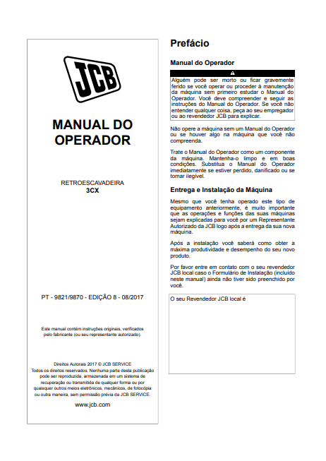 With This Operator’s Manual provide full instruction on how to begin using the machine and its controls of your JCB backhoe loader Models of :
