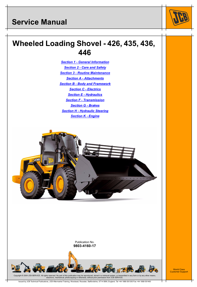 With this original factory Service manual, the technician can detect and solve any problems encountered when repairing your JCB 437 Wheeled Loading Shovel and This workshop repair manual for the JCB 437 Wheeled Loading Shovel provides detailed instructions and technical information for maintenance and repair tasks to keep your equipment in top condition.