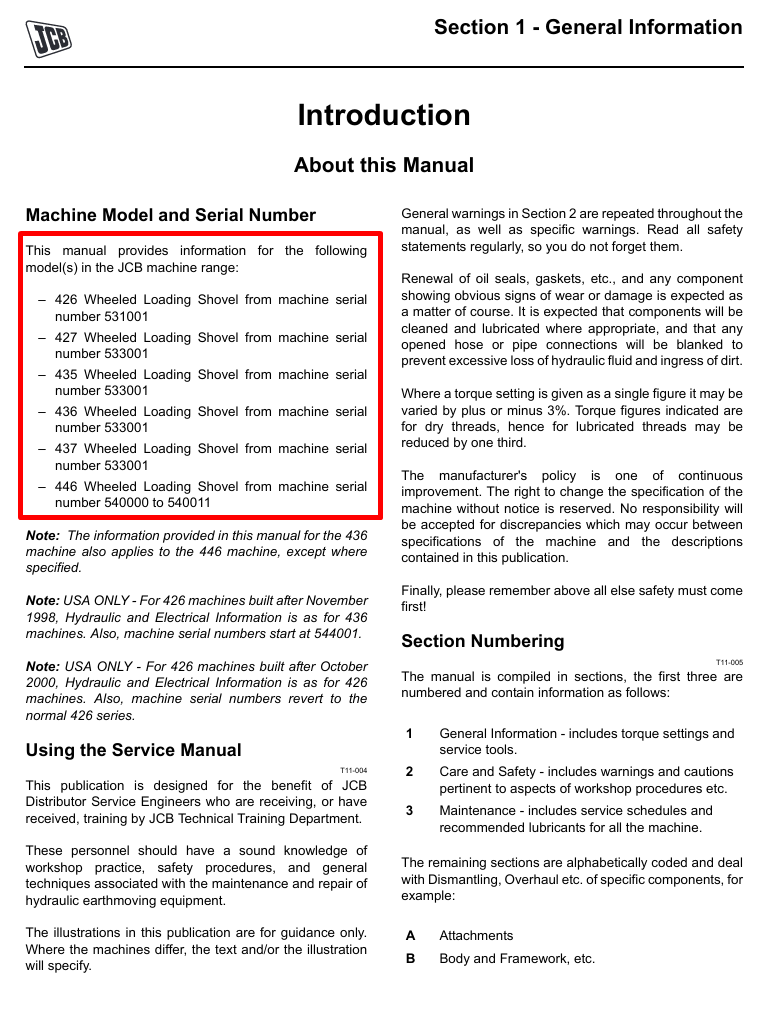Compatible Machine Model and Serial Number Range JCB 437 Wheeled Loading Shovel