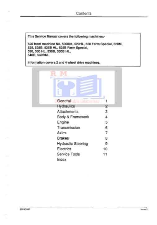 JCB 520 TO 540 Loadall Range Service Repair Manual