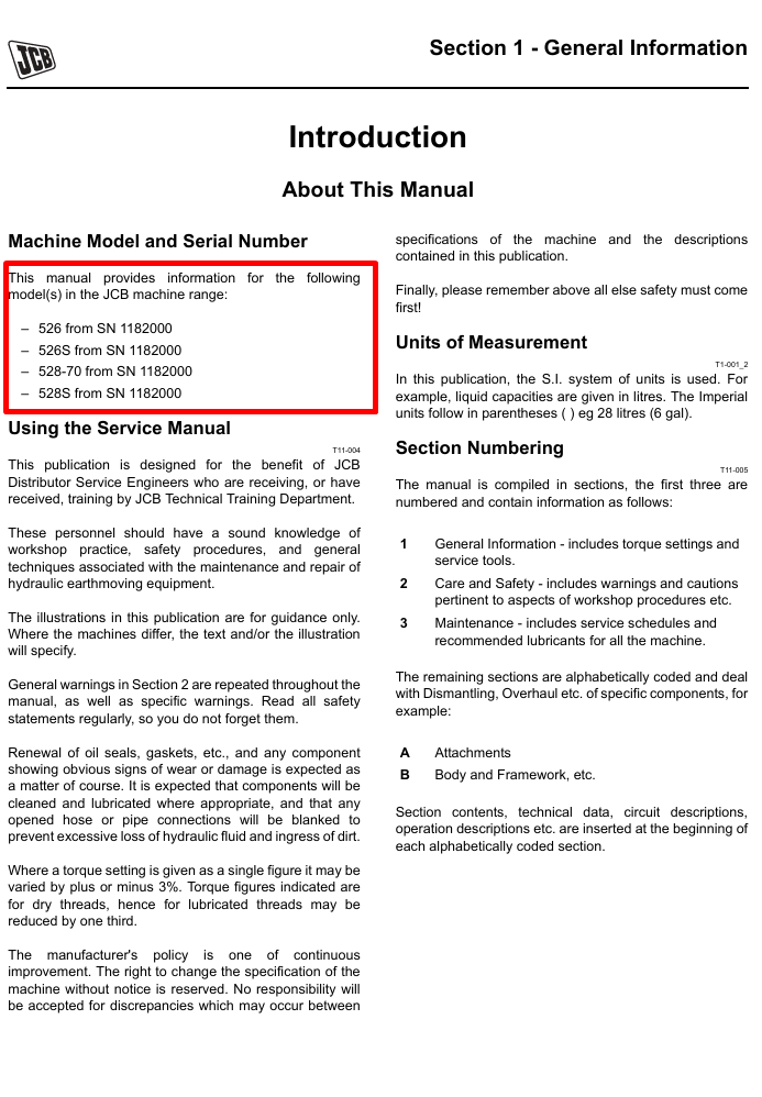 This publication is designed for the benefit of JCB Distributor Service Engineers who are receiving, or have received, training by JCB Technical Training Department.