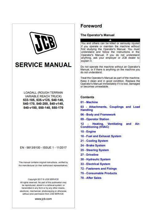 JCB 533-105, 535-v125, 540-140, 540-170, 540-200, 540-v140, 540-v180, 550-140, 550-170 Service Repair Manual