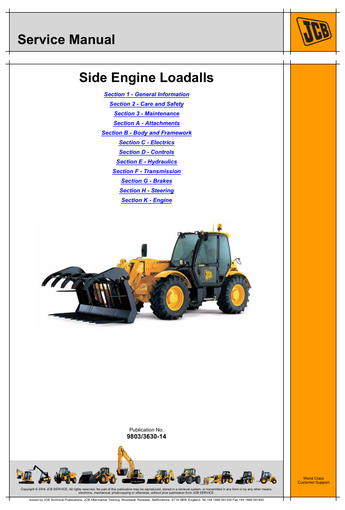 With This Service Repair Manual The Technician can solve any problems encountered in the operation of your JCB Telehandler