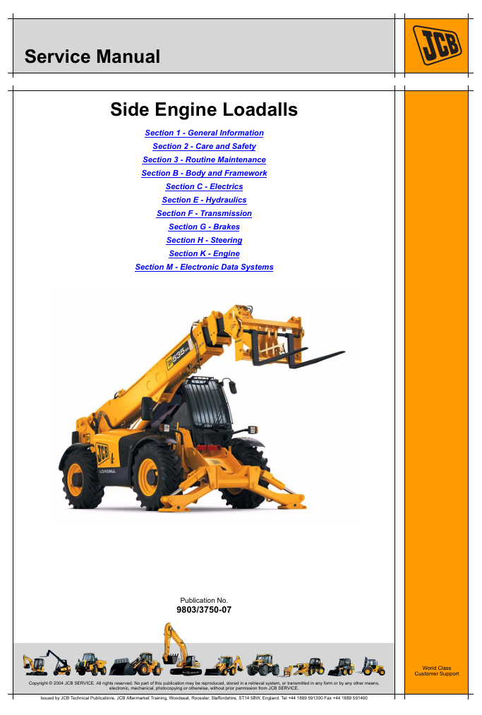 With this original factory Service manual, the technician can detect and solve any problems encountered when repairing your JCB 540-140 Side Engine Loadall and This workshop repair manual for the JCB 535-125 Hi Viz Side Engine Loadall provides detailed instructions and technical information for maintenance and repair tasks to keep your equipment in top condition.