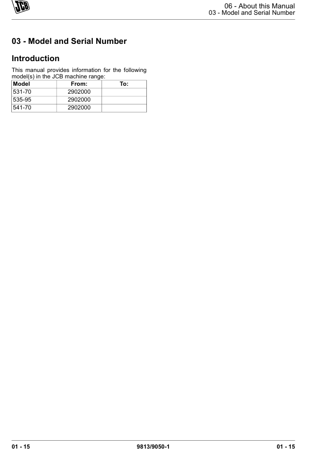 With this original factory Service manual, the technician can detect and solve any problems encountered when repairing your JCB 541-70 Loadall and This workshop repair manual for the JCB 541-70 Loadall provides detailed instructions and technical information for maintenance and repair tasks to keep your equipment in top condition.