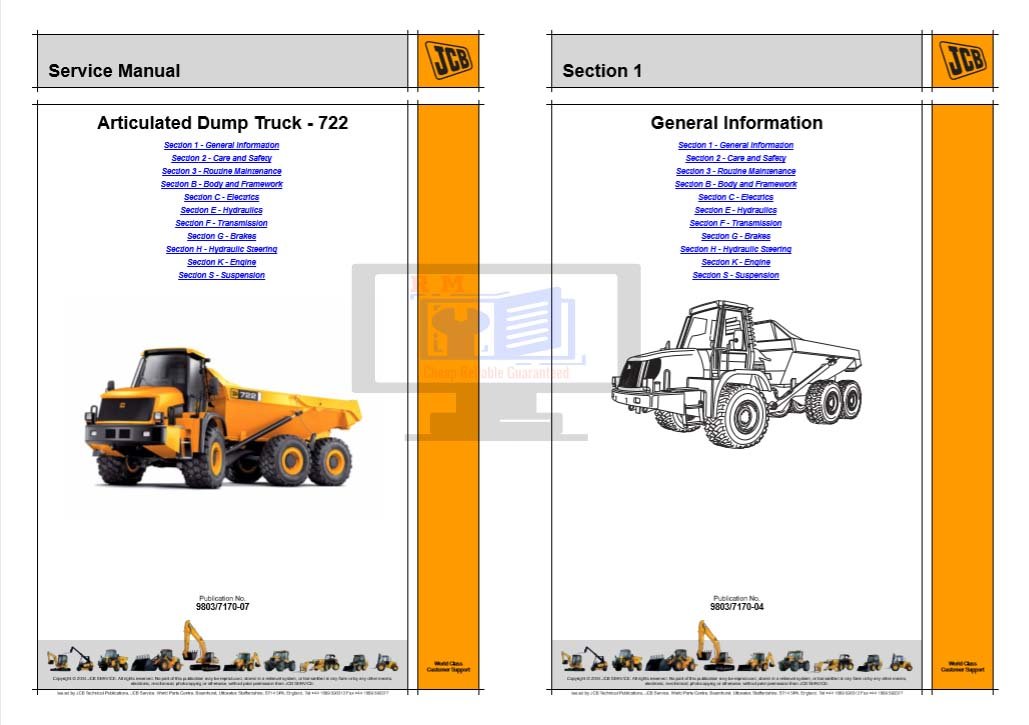 | Package include | Service Repair Manual for JCB 722 Articulated Dump Truck |