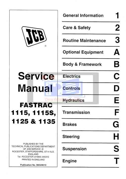 Keep your JCB Fastrac running at peak performance with this comprehensive Service Repair Manual for the JCB Fastrac 1115, 1115S, 1125, and 1135 models. Designed for professional technicians and experienced DIY mechanics alike, this manual provides detailed instructions, diagrams, and specifications to help you maintain, service, and repair your machine correctly and efficiently.