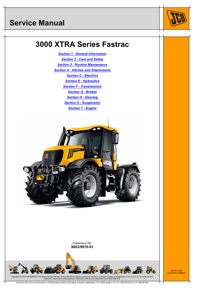 With this original factory Service manual, the technician can detect and solve any problems encountered when repairing your JCB 3000 XTRA Series Fastrac and This workshop repair manual for the JCB 3000 XTRA Series Fastrac provides detailed instructions and technical information for maintenance and repair tasks to keep your equipment in top condition.