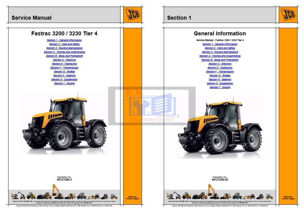 This official Service Repair Manual provides complete maintenance and repair procedures for the JCB Fastrac 3200 and JCB Fastrac 3230 tractors. Ideal for technicians, service centers, and owners, this manual offers in-depth coverage of all major systems and components, ensuring you can perform repairs to factory standards.