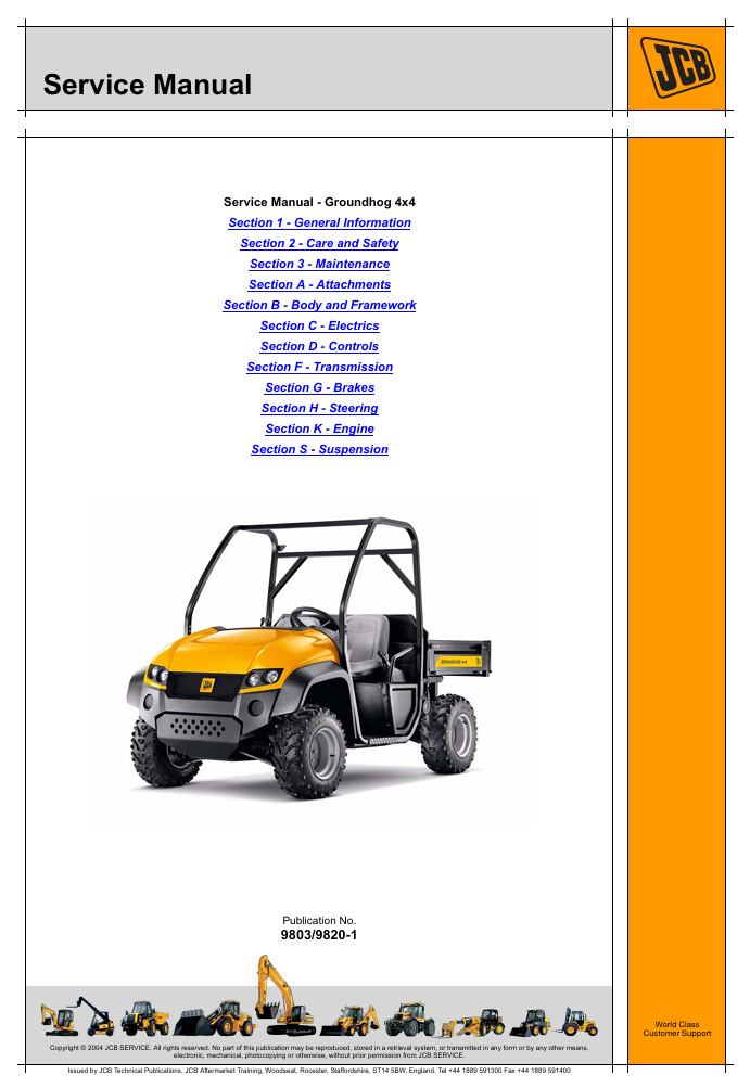With This Service Repair Manual The Technician can solve any problems encountered in the operation of your JCB Groundhog