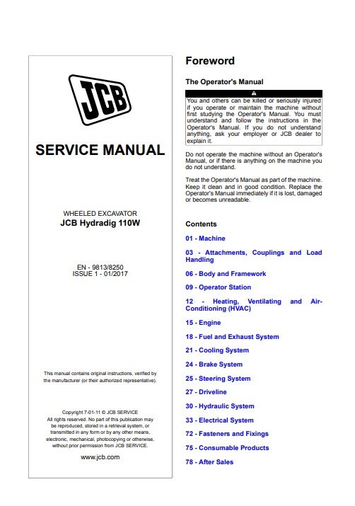 JCB 110w Hydradig Wheeled Excavator Service Repair Manual