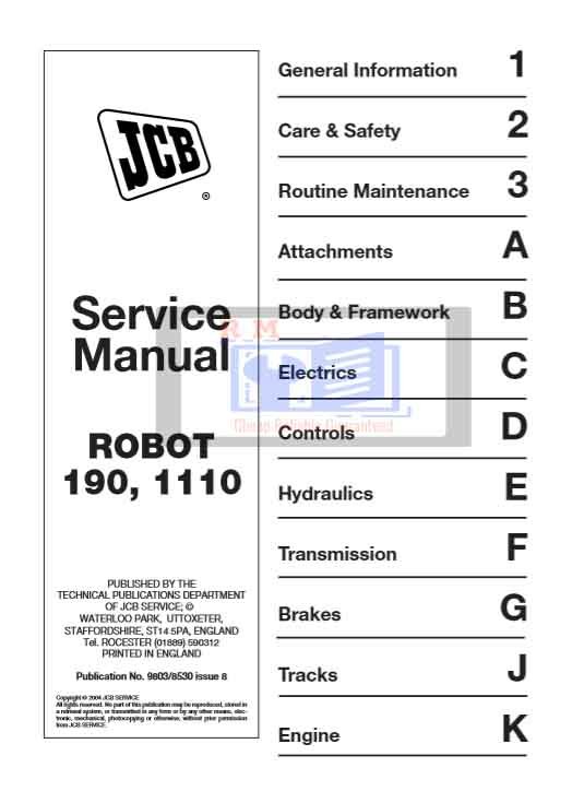 his JCB ROBOT 190 and ROBOT 1110 Service Repair Manual is the official OEM guide for servicing, troubleshooting, and repairing JCB skid steer loaders. Designed for professional mechanics, technicians, and equipment owners, this manual provides everything needed to keep your JCB ROBOT models running at peak performance.