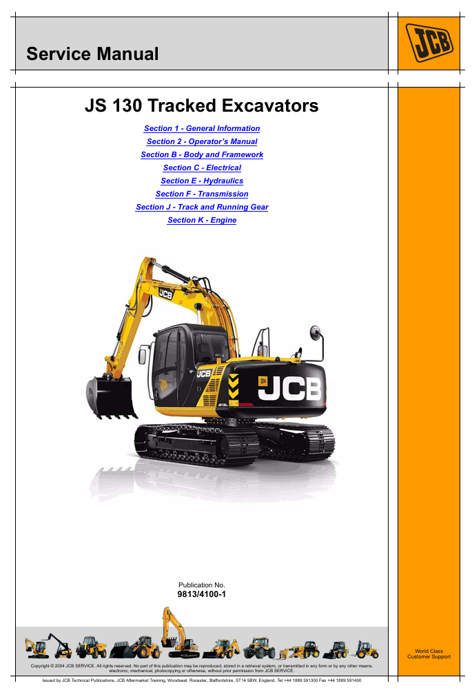 With this original factory Service manual, the technician can detect and solve any problems encountered when repairing your JCB JC130 Excavator and This workshop repair manual for the JCB JC130 Excavator provides detailed instructions and technical information for maintenance and repair tasks to keep your equipment in top condition.
