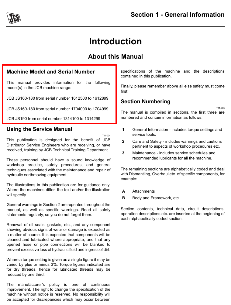 With this original factory Service manual, the technician can detect and solve any problems encountered when repairing your JCB JS180 Excavator and This workshop repair manual for the JCB JS180 Excavator provides detailed instructions and technical information for maintenance and repair tasks to keep your equipment in top condition.