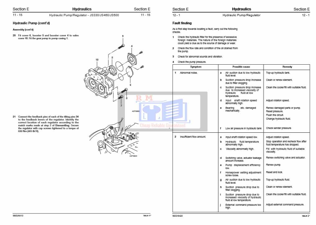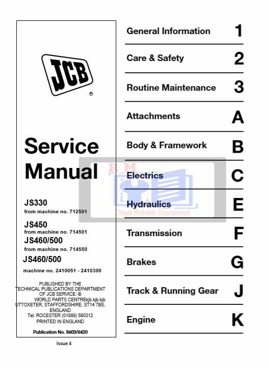 JCB JS330, JS450, JS460, JS500 Excavator Service Repair Manual