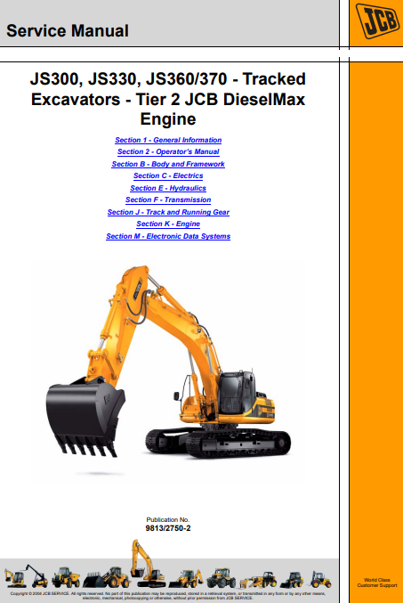 With this original factory Service manual, the technician can detect and solve any problems encountered when repairing your jcb Excavator and This workshop repair manual for the JCB JS330 Excavator provides detailed instructions and technical information for maintenance and repair tasks to keep your equipment in top condition.